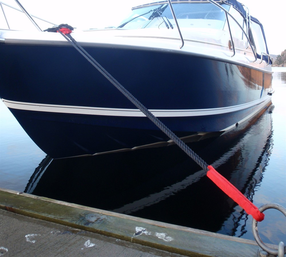 Förtöjningslina med inbyggd ryckdämpare. 60% polyester och 40% ryckdämpande flexfiber.Splitsat öga försett med slithylsa samt en extra slithylsa utmed linan. Sjunker i vatten.5 års UV-skydd.
