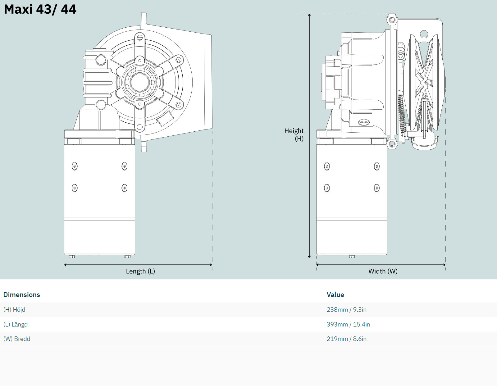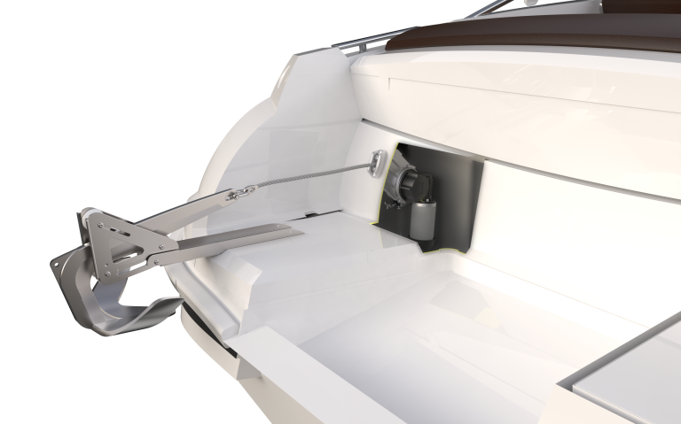 Ankarspelspaket för invändigt montage. Maxi 43 är ett kraftfullt ankarspel med funktioner som frifall och automatiskt ändstopp.