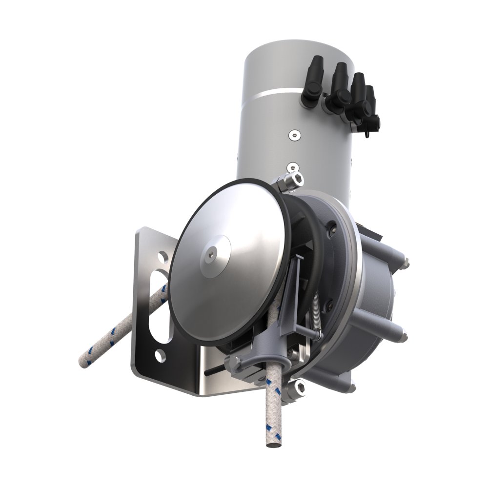 Fästbygeln kan rotera 360 grader vilket gör att du har många monteringsmöjligheter, mot akterspegel, främre skott eller hängande under däck. Även elmotor och linförare kan roteras runt, vilket gör att ankarspelet kan monteras på ytor som har en annan vinkel i förhållande till akterspegeln. Detta förenklar monteringen avsevärt.