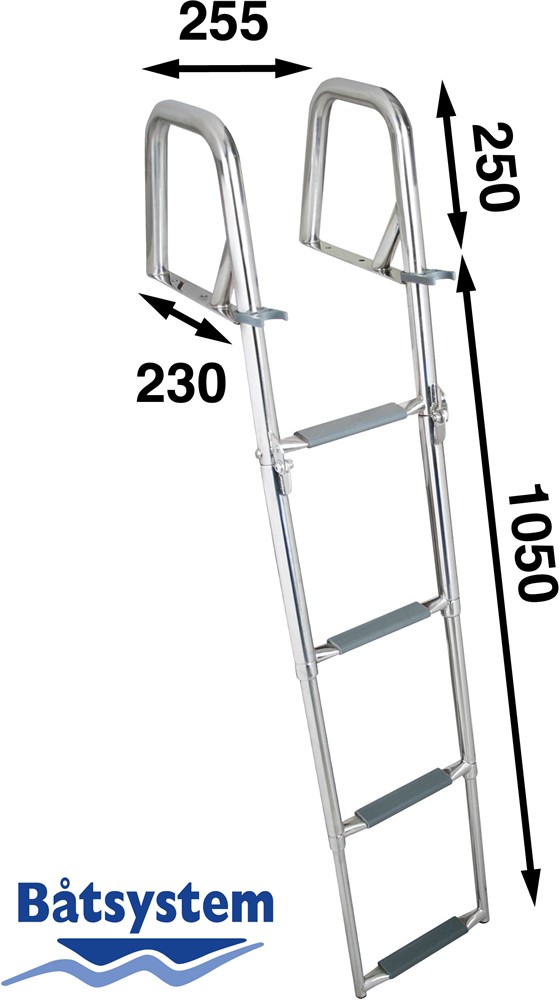 Antal steg 4 Art. Båtsystem BUT45 Bredd (mm) 255 Diameter (mm) 32 Djup (mm) 230 Längd (mm) 1050 Längd från (mm) 453 Material Rostfri A4/316 Lev. artikelnummer BUT45 EAN-kod: 7332640003848 -