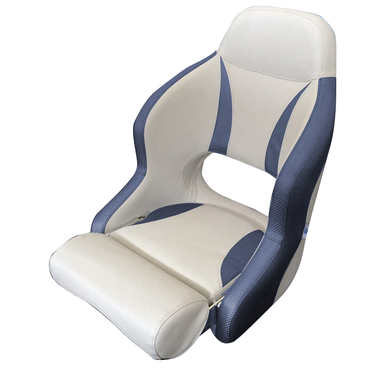 Båtstol med kombinerad stå-/sittfunktion. Främre dynan lutar upp med parallella gångjärn som gör att stå-/sittfunktionen ger rätt avlastning och stöd i båda lägena. Stommen är tillverkad av rotationsgjuten plast, vadderad skumplast och klädd med Markilux Soft Akryl. Stolen är ergonomiskt uppbyggd för maximal komfort. Färg: Ljusgrå med mörkblå detaljer. Sittyta: 403x475 (BxDj).