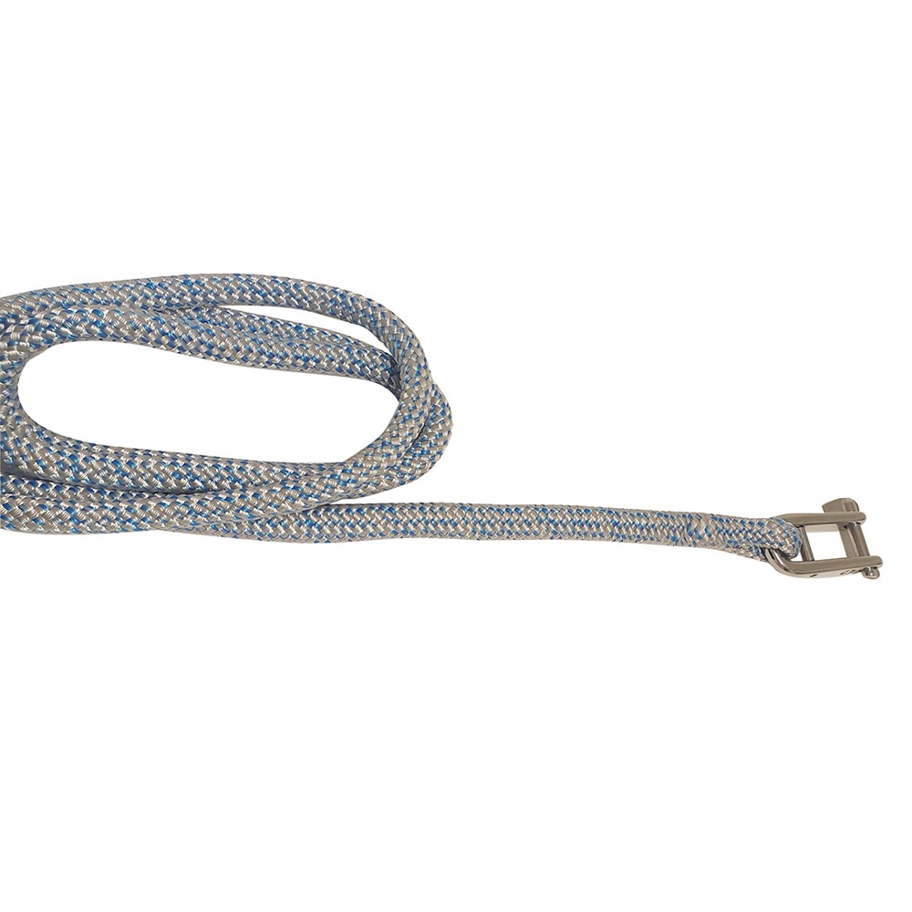 Höljet i Polyester med en mixad kärna av Dyneema/XLF. Det låga töjningen ger bättre prestanda än tex rena Polyester linor. Med insplitsad rostfri nyckelschackel.
