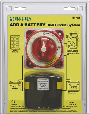 Enkel separation av start och förbrukningsgrupp via en 2-polig huvudströmbrytare med möjlighet att sammankoppla batterierna vid nödstart. För upp till 120 A generator. Brytaren är gastät och gnistsäker och lämpar sig för montage i motorrummet. Levereras komplett med batteriströmbrytare och skiljerelä.