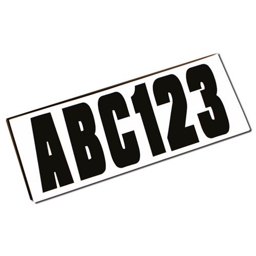 Bokstavs- och siffersats tillverkade i vattentät och stark vinyl som motstår bränsle, blekning och repor.