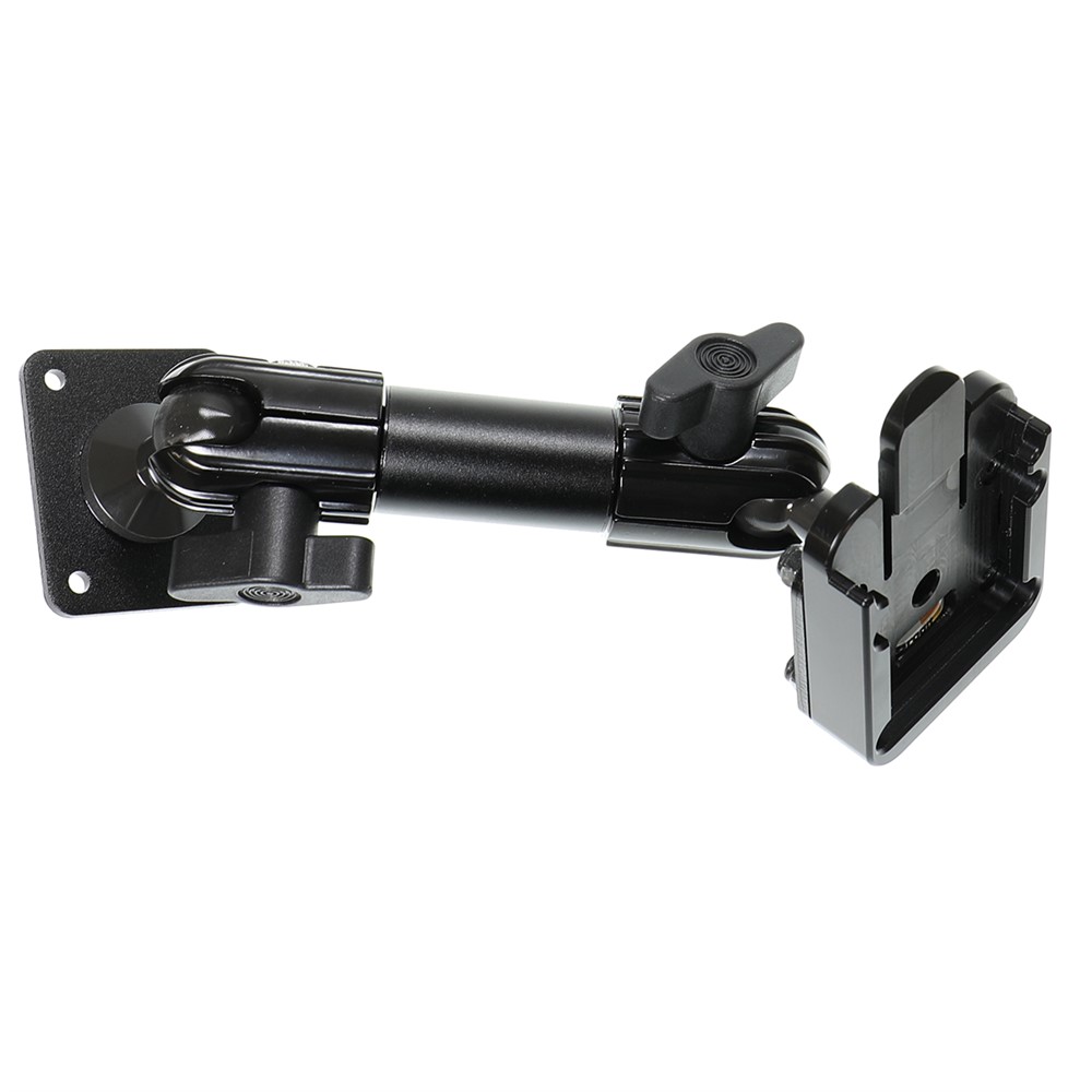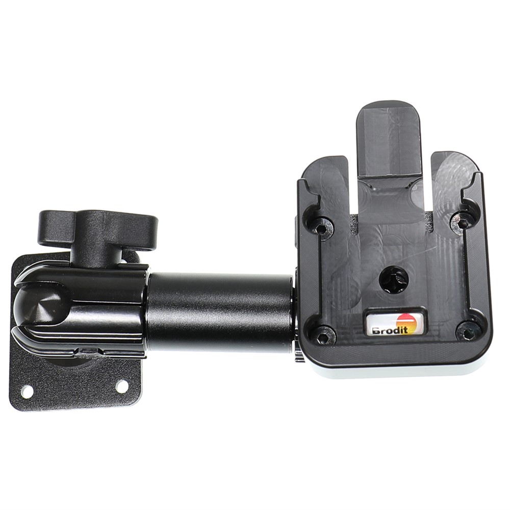 Monteringsfäste med två kulleder. Du kan enkelt ställa in vinkeln både på monteringsplattan och snabbfästet efter behov. Kullederna är vinklingsbara 180° i alla riktningar och vridbara 360°. Monteringsplatta 42x50 mm med AMPS-hål. Med snabbfäste som passar Brodits hållare.