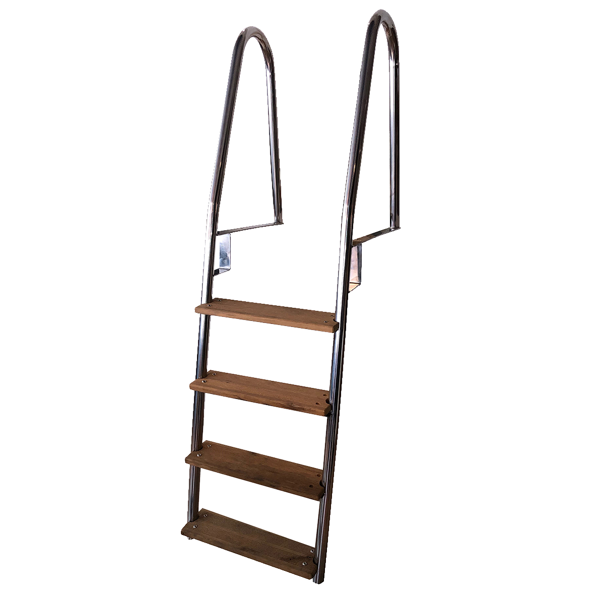 Fast badstege för brygga. Tillverkad i rostfritt stål, AISI316. Steg i kompositmaterial vilket gör den tålig och hållbar.