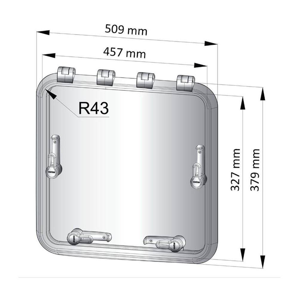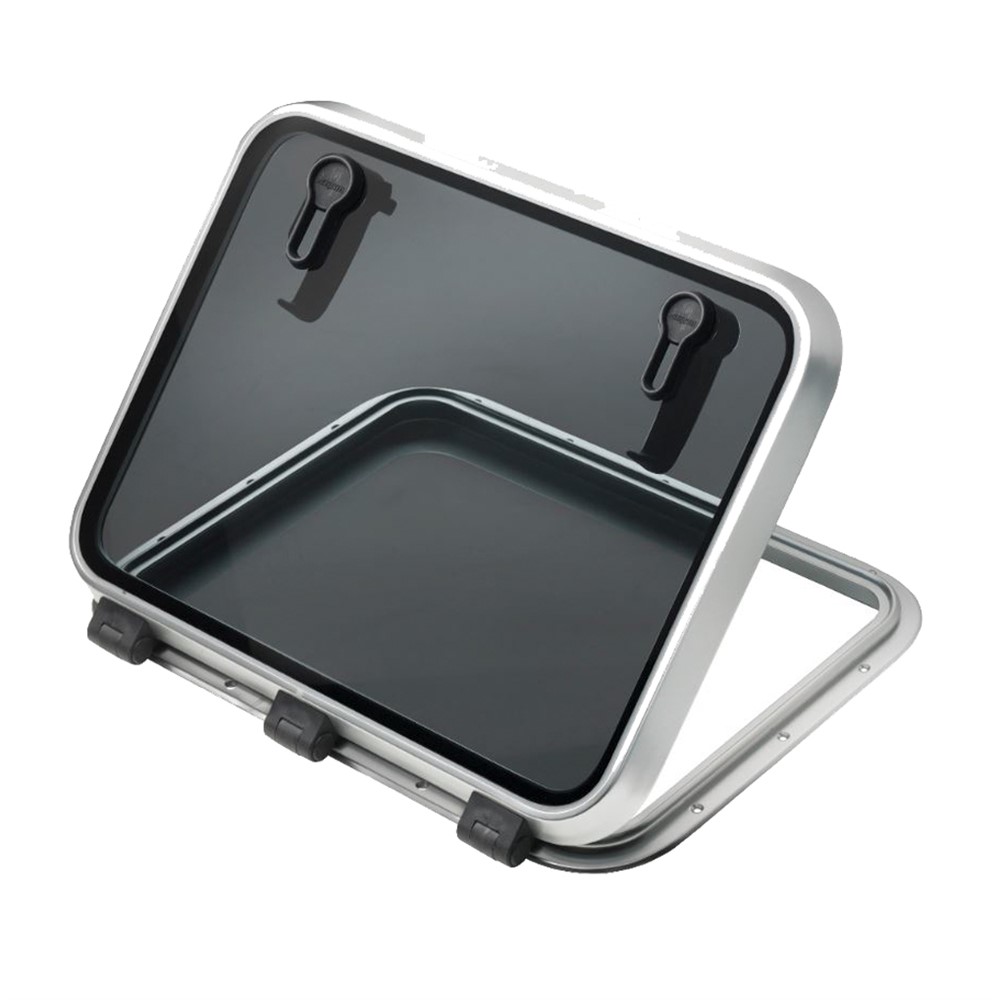 Extra kraftig däckslucka med en satinblank eloxerad ram och 10 mm rökfärgat akrylglas. Designad för det tuffa sjölivet till havs.
