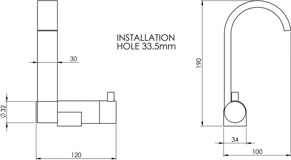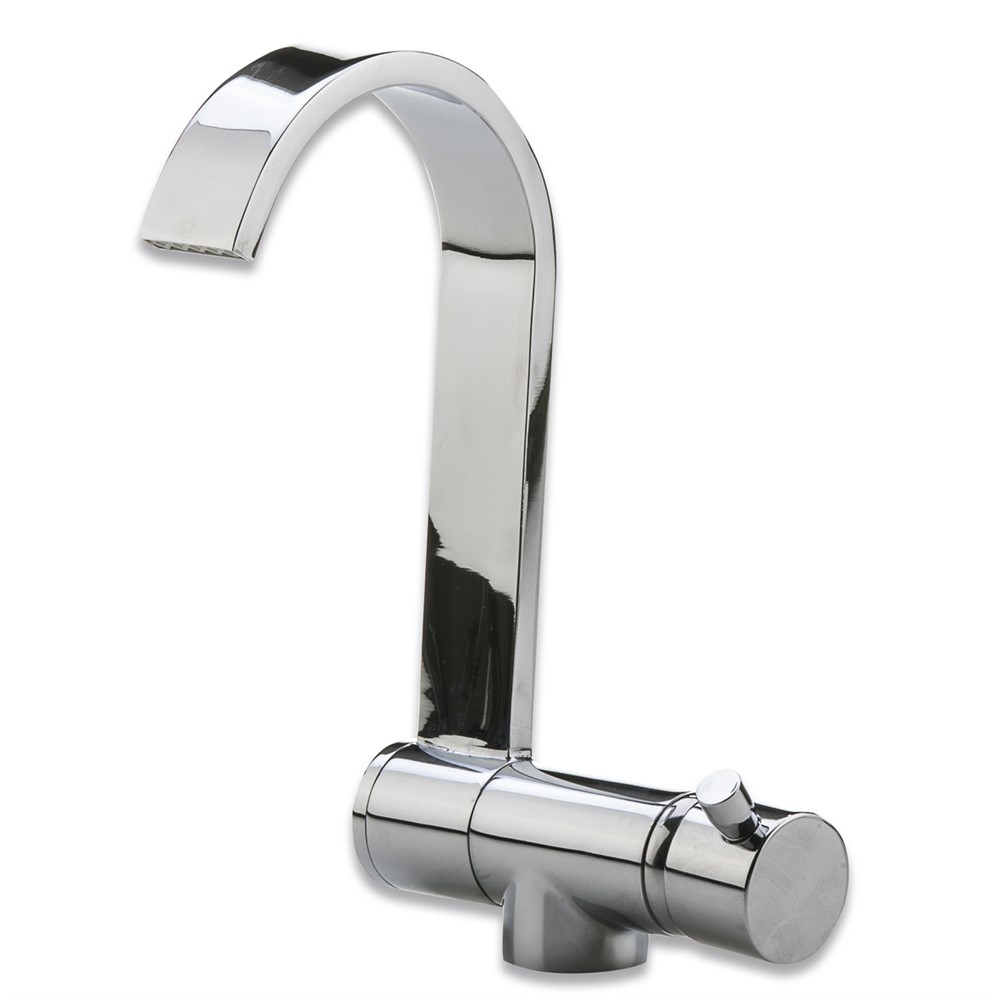 Kromad engreppsblandare med vikbar utkastare. Tillverkad i mässing.