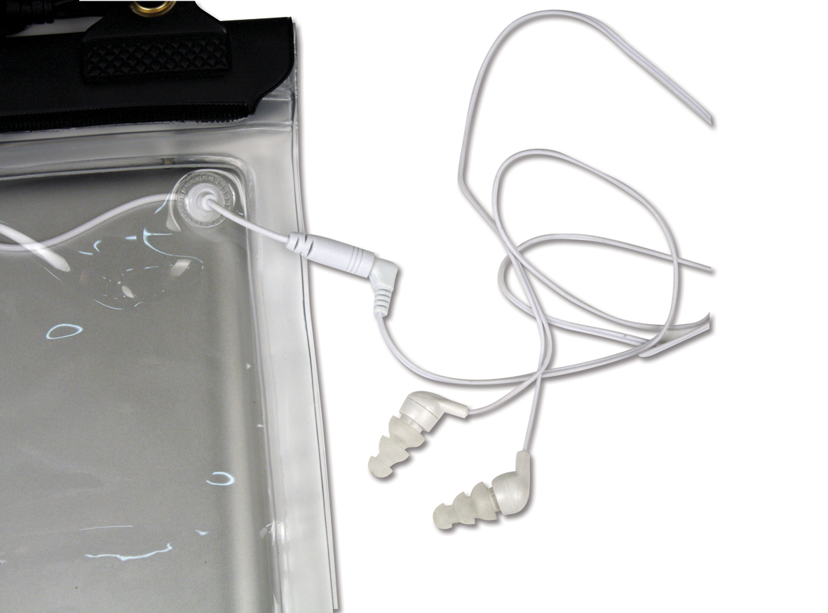 Vattentäta hörlurar kompatibel med det vattentäta fodralet till smartphone, art.nr 13235.Kabelns längd är 1100 mm.