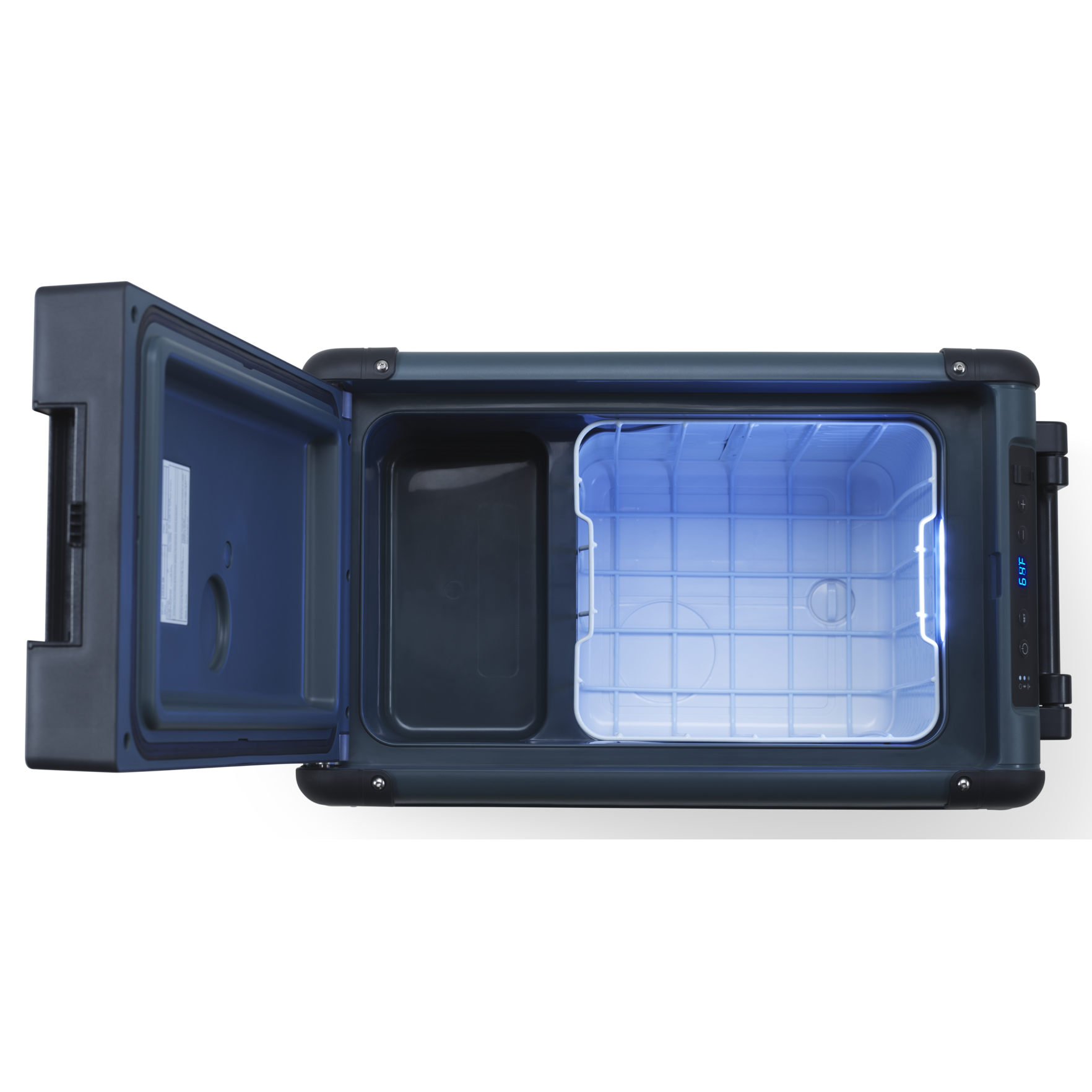 Den robusta designen är byggd för tuff användning. Denna kylbox har en smartphone-app för att styra den inre temperaturen, ergonomiska fällbara handtag, och en digital display. Innerbelysning! Perfekt för ditt nästa helgäventyr!Specifikationer