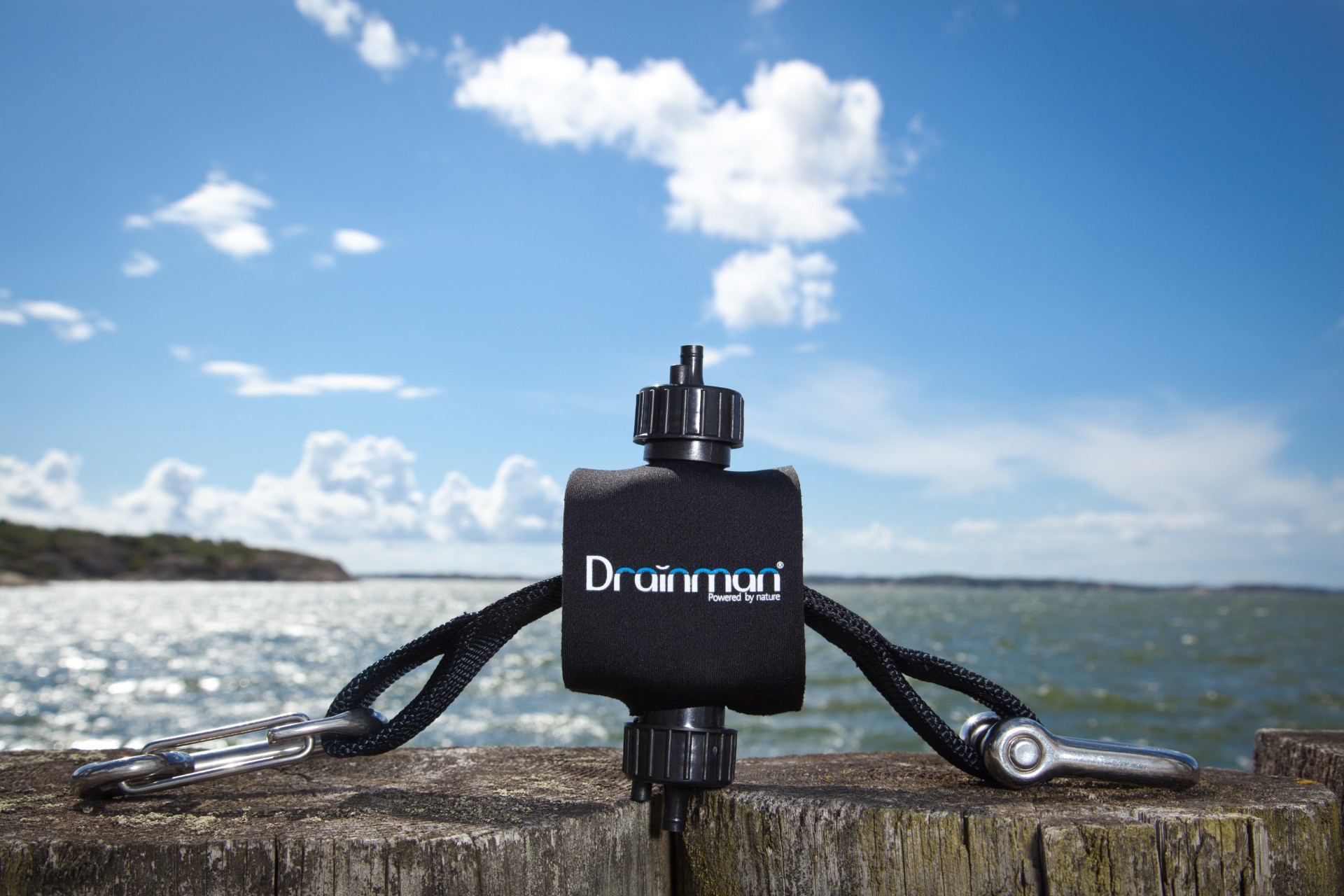 Med naturlig kraft från vågor och vind och det ryck som uppstår i förtöjningslinan sköter Drainman pumpandet helt automatiskt. Den är enkel att montera, praktisk att ta med och låsa fast.