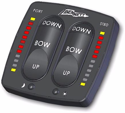 Ombyggnadsats för Bennet trimplan. 2 styrplatserGör om så att du får nivåindikator på hur trimplanen står.Innehåller 2 st Manöverpaneler med LED för nivå, nya toppar till trimcylindrarna Reläer kablar installations detaljer m m.