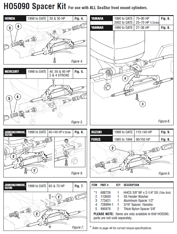 Seastar och Baystar kit som krävs för vissa modeller av utombordare för bästa montering.