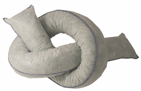 Behandlad cellulosamassa med polypropylenhölje. Absorberar petroleumvätskor ur vatten.