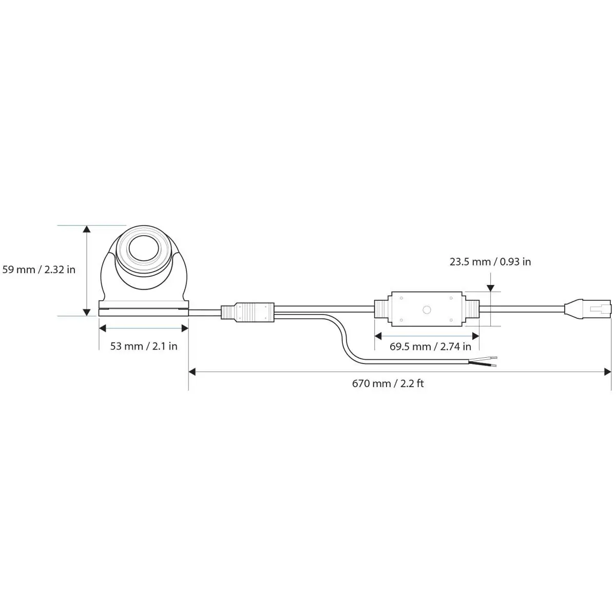 Bredd (mm) 59,5 mm Höjd (mm) 52,9 mm IP-Klass 66 Vikt (g) 420 Information Kamera med 3MP CMOS-sensor levererar upp till 1080p upplösning -