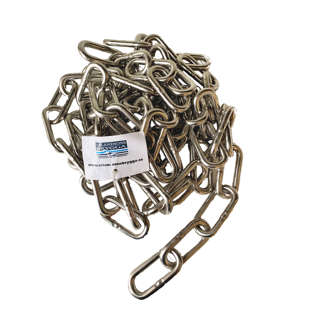 Rostfritt stål. Långlänkad. Förpackad i påse.