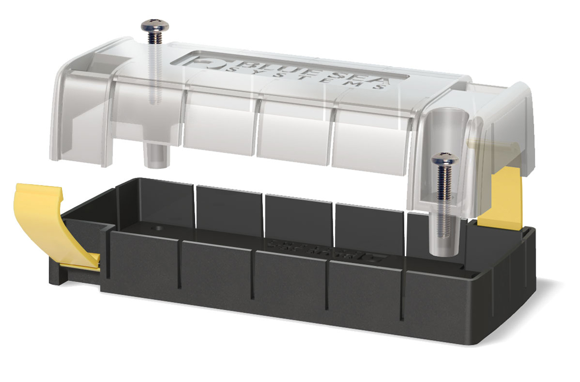 Skyddshölje bestående av bottendel och transparant lock med demonterbara flikar vid kabelanslutningar. Passar till kopplingsplint art.nr 13090.