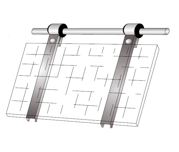 Anodiserad aluminium. Monteras hängande i pushpit eller på annan lämplig plats.Staglängd 650mm