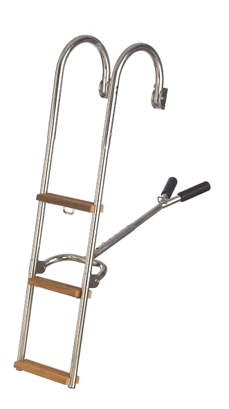 Rostfritt stål AISI 316. Fotsteg i teak. Teleskopisk.