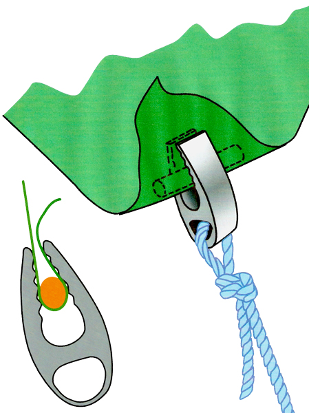 Lätt att sätta fast och ta bort. Den greppar säkert och skakar inte loss. Billigare än att köpa en ny presenning när vindarna har förstört öljetterna.