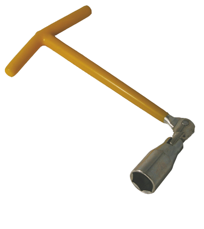 Tillverkad av stål. Ledat plastisolerat T-handtag och förkromad hylsa.