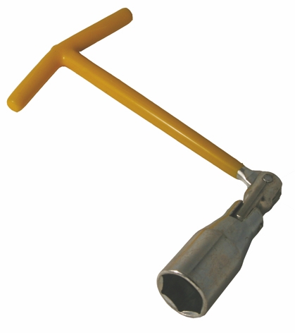 Tillverkad av stål. Ledat plastisolerat T-handtag och förkromad hylsa.