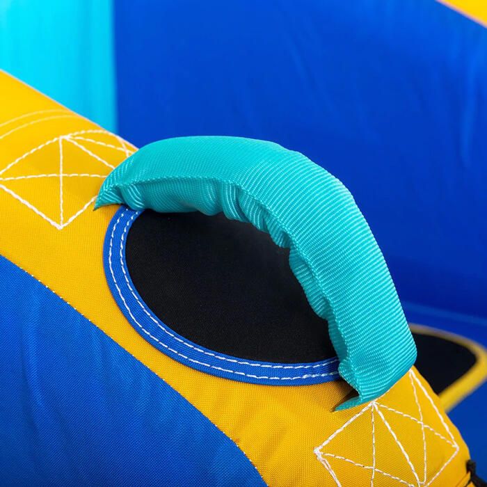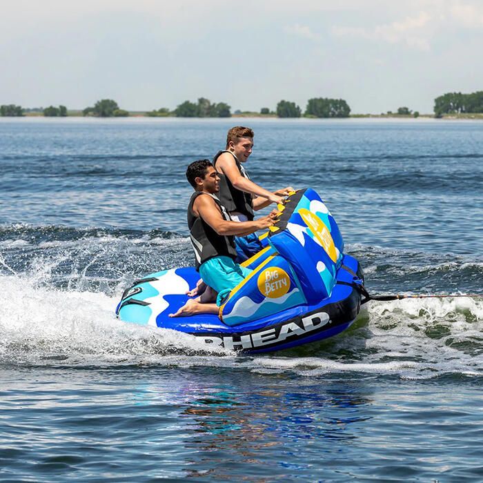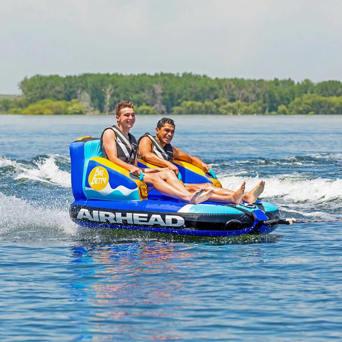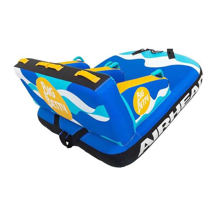 Big Betty åktube för båt är en vidareutveckling av Airheads populära Mable-serie, med den extra fördelen av uppblåsbara avdelare mellan åkarna. Njut av ett bekvämt ryggstöd och säkra, greppvänliga handtag för en fartfylld åktur utan risken att slå i varandra – eller bogsera från motsatt håll för en actionfylld åktur i ”Chariot-stil”.