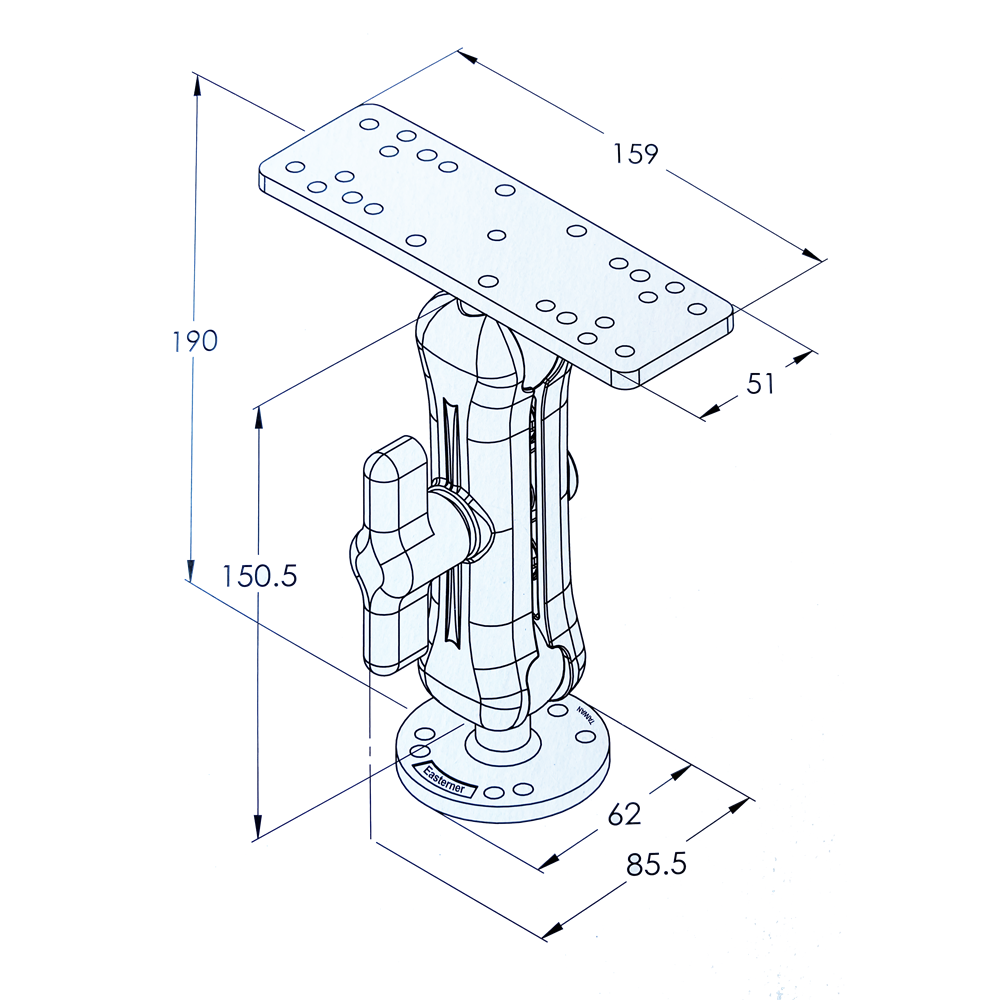 Extremt prisvärt och gediget kulledat instrumentfäste med rektangulär fästplatta. Tillverkad i pulverlackerad aluminium. Storleken på kulan är 1-1/2" vilket gör fästet mycket stabilt.